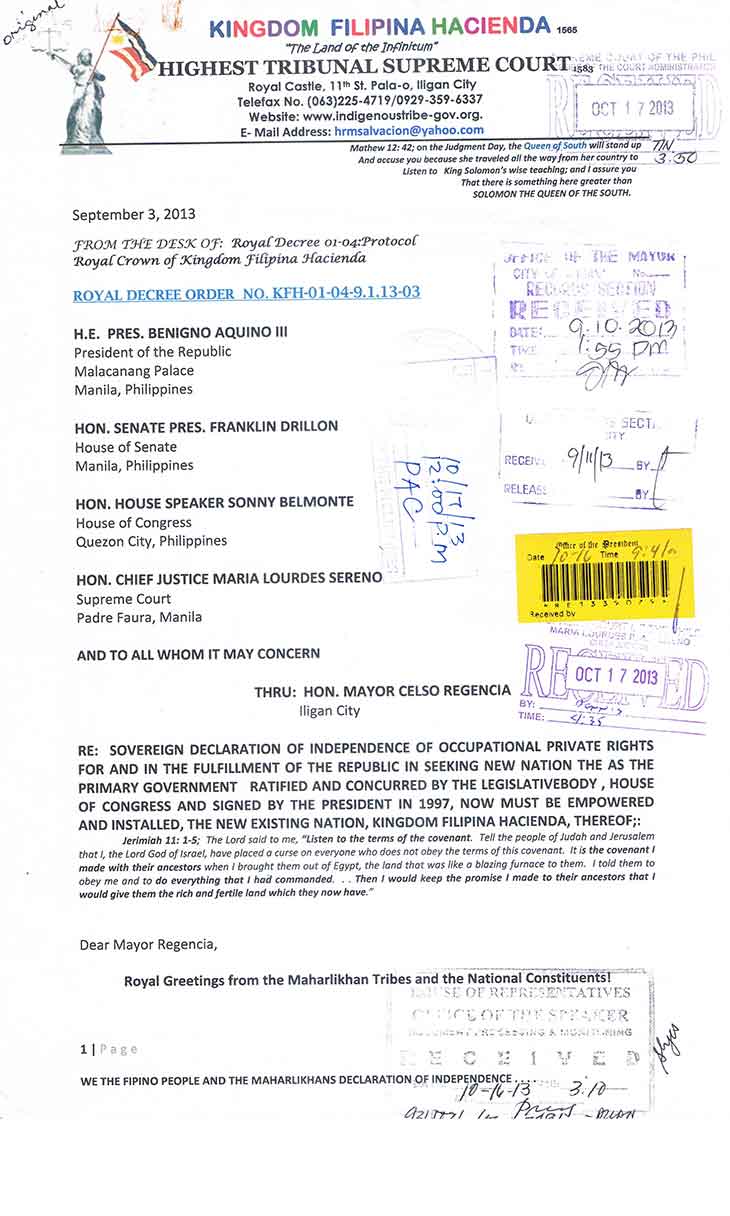 • D.F.A. Letter to Iligan City Justice P-Noy