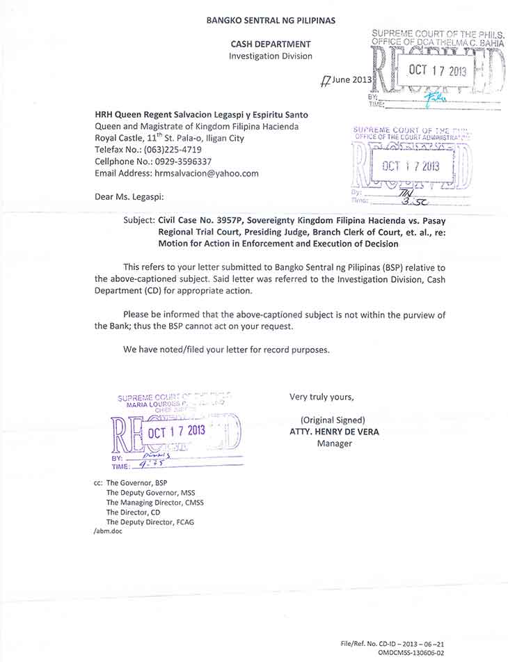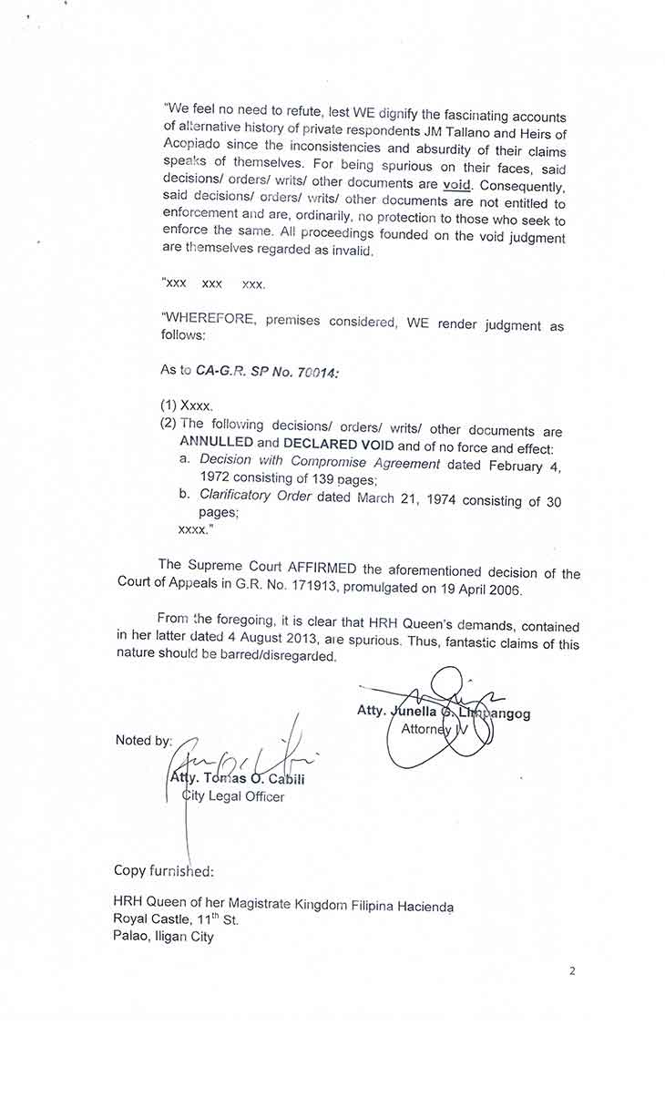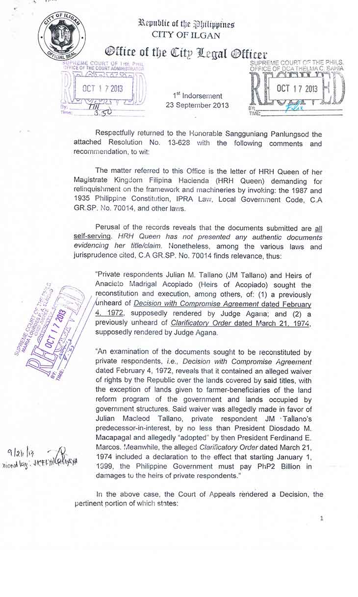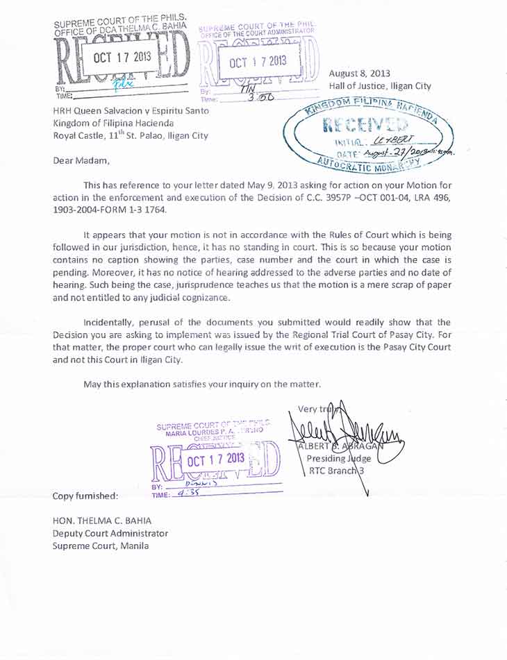 • D.F.A. Letter to Iligan City Justice P-Noy