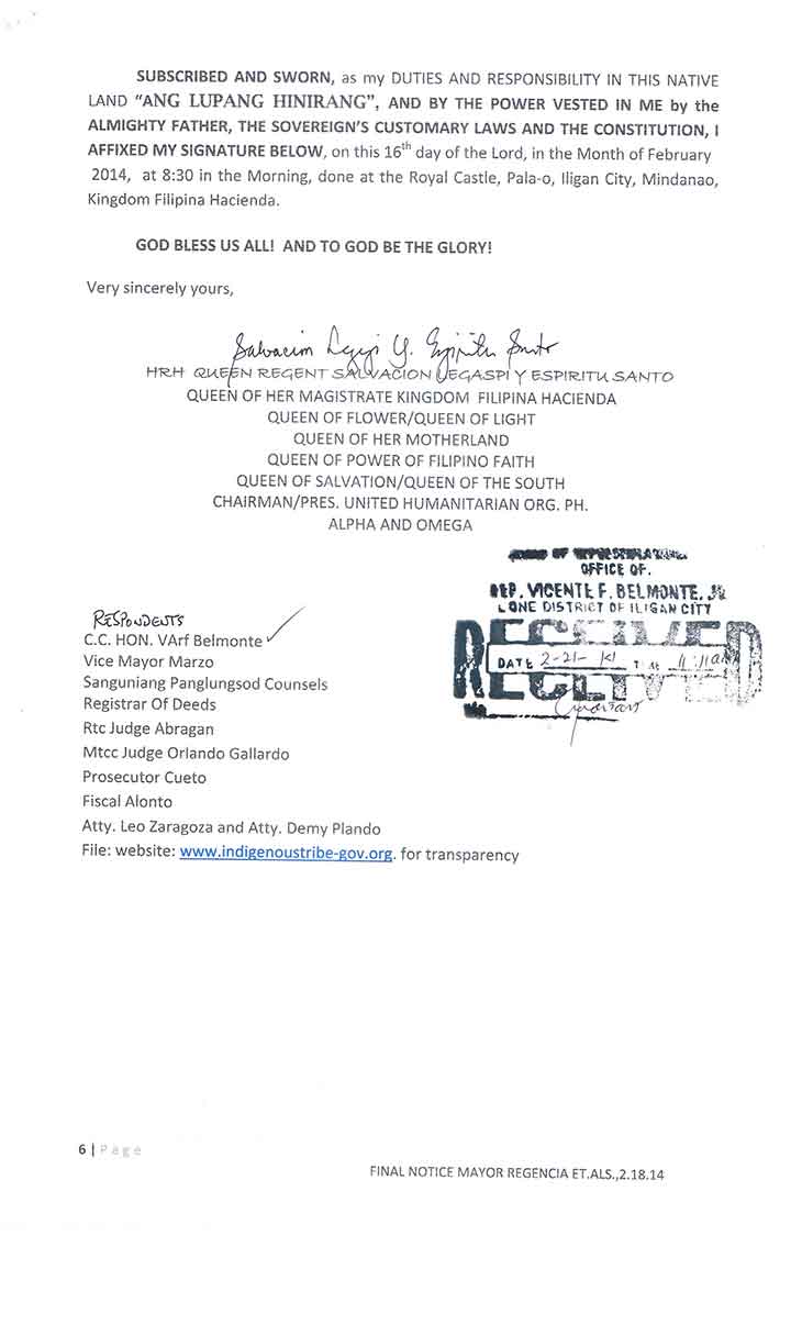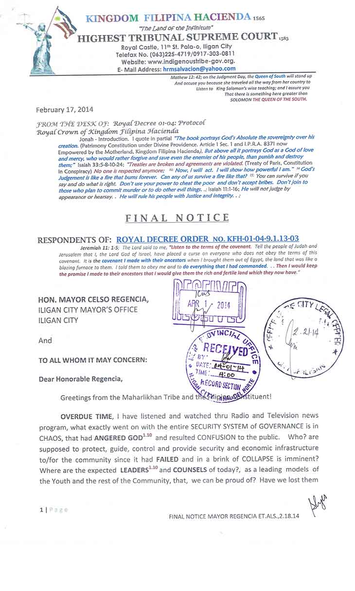 • D.F.A. Letter to Iligan City Justice P-Noy