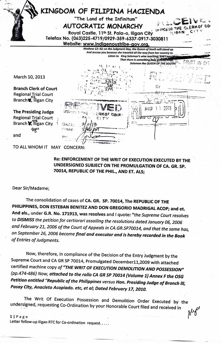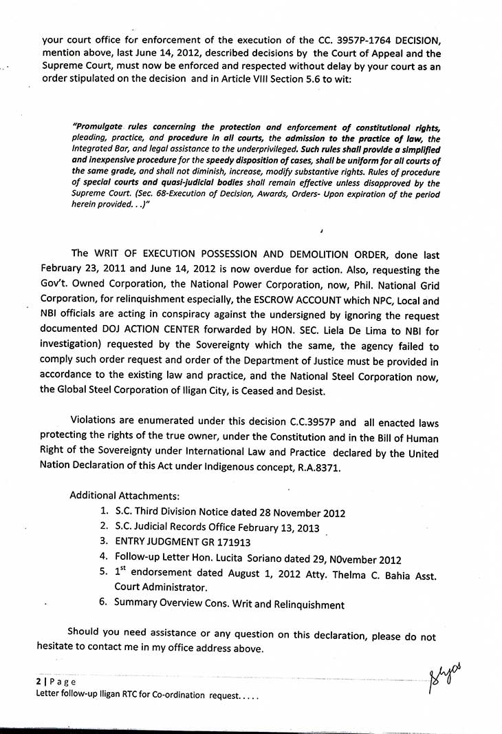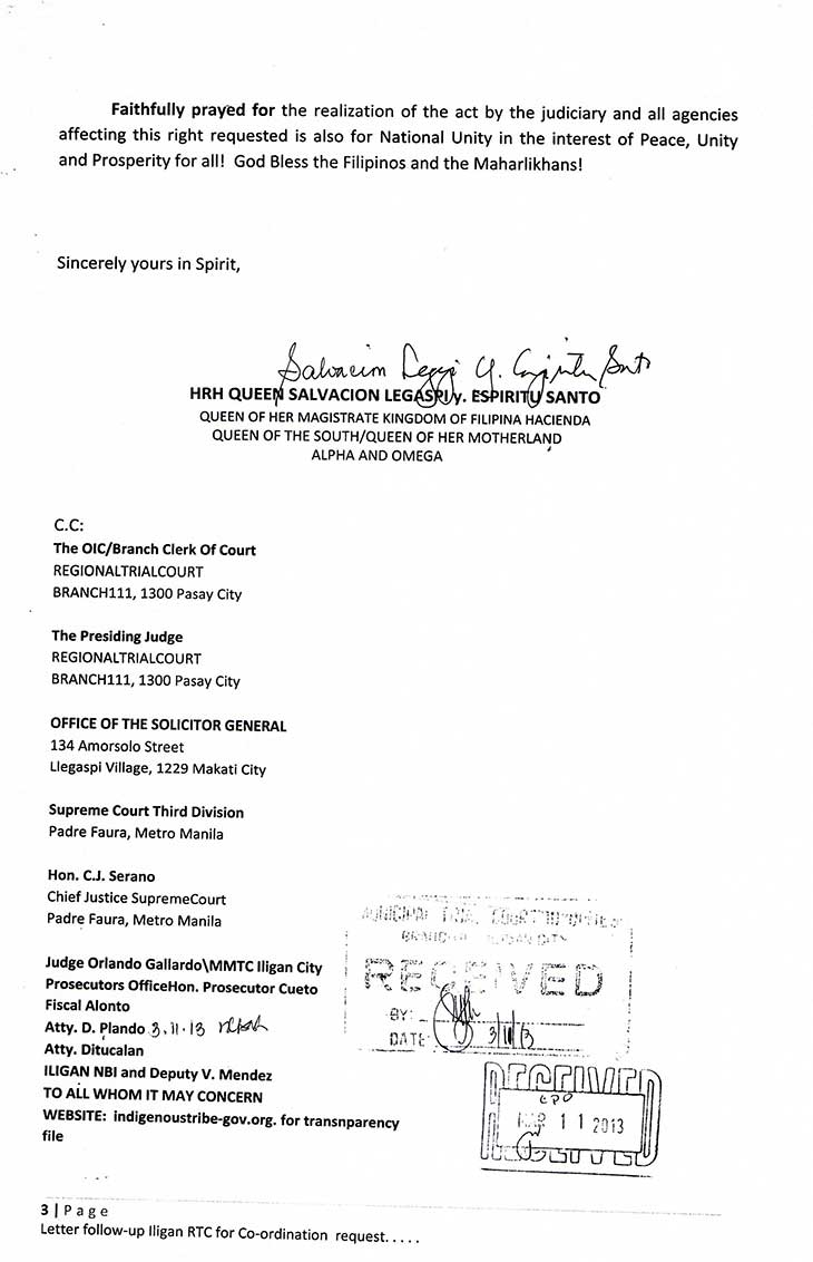 D.F.A. Letter to Iligan City Justice P-Noy