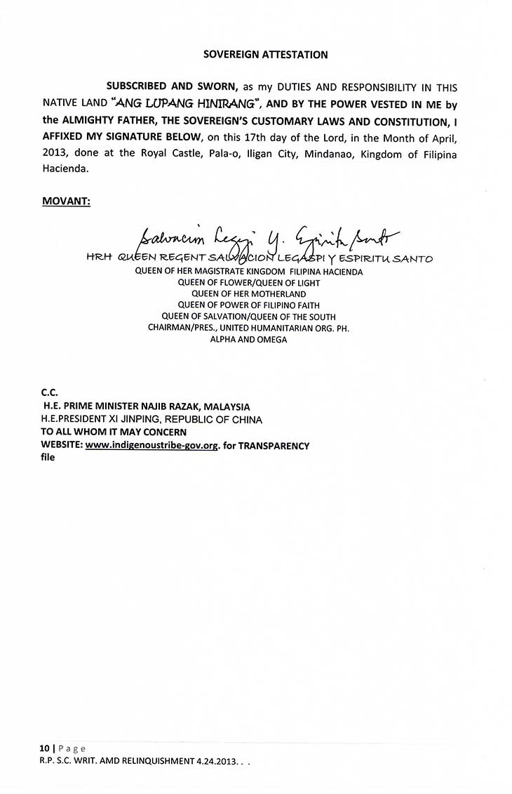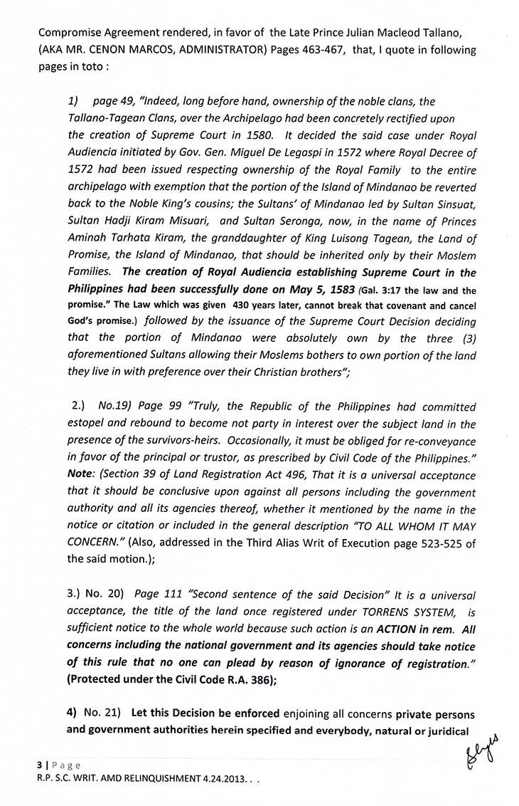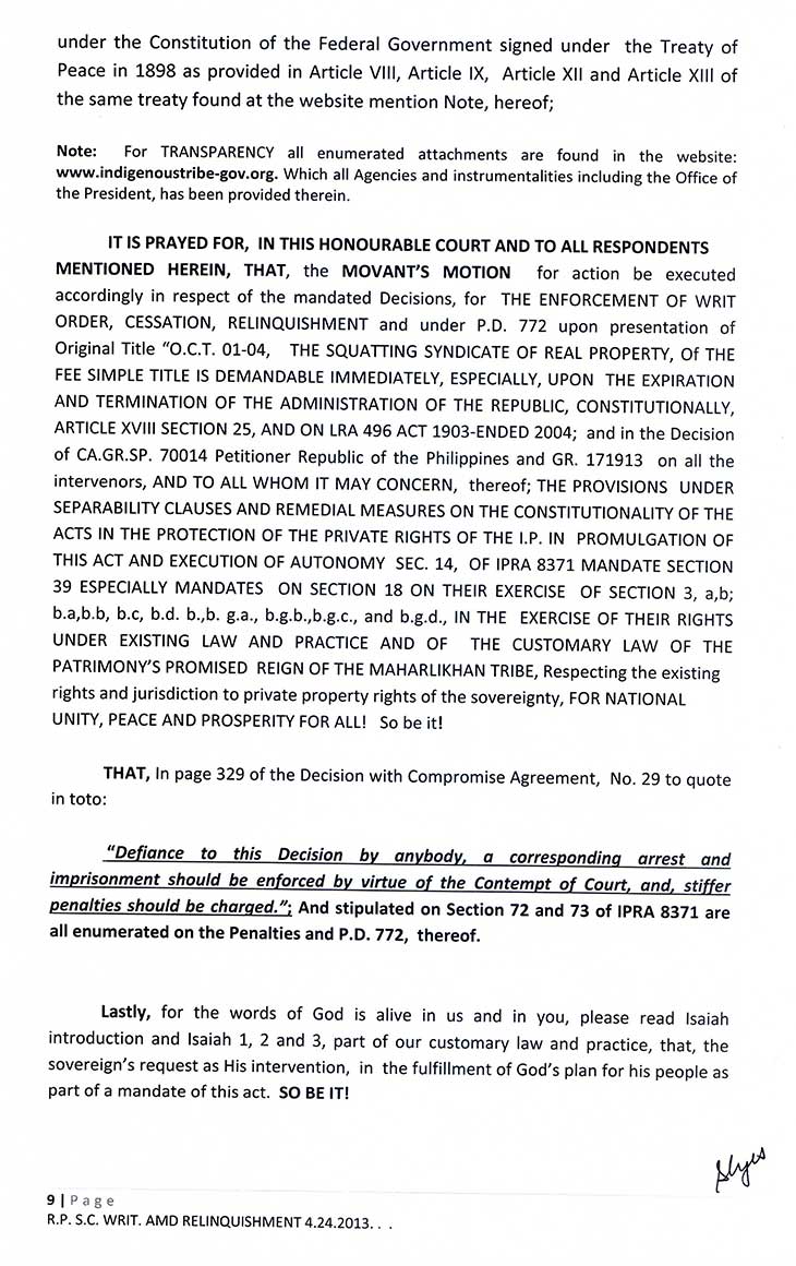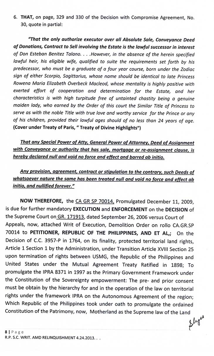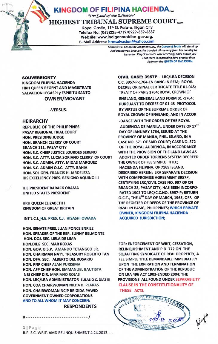 • TREATY OF PARIS BOOK OF REDEEMPTION DEMAND FOR RELINQUISHMENT TO THE SOVEREIGNTY: FOR THE WHOLE FILIPINO PEOPLE AND THE MAHARLIKHAN TRIBE