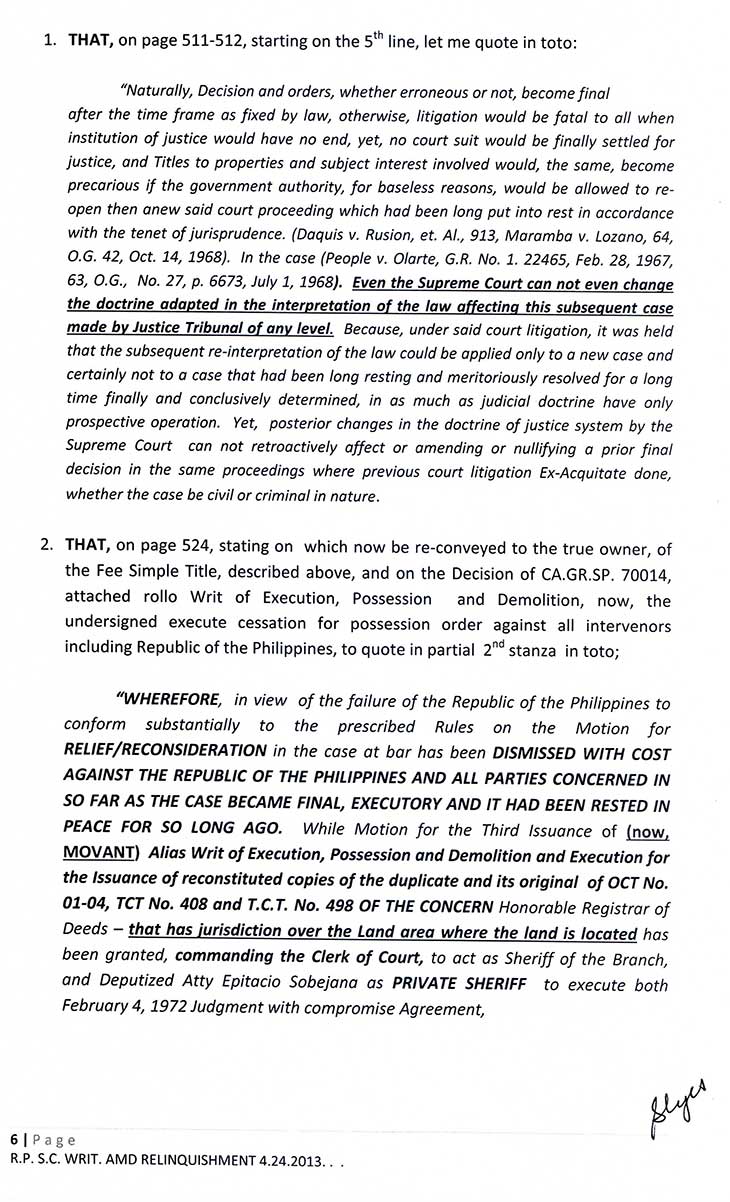 (RES JUDICATA "IN REM") DEMAND FOR RELINQUISHMENT OF THE REPUBLIC TO THE SOVEREIGNTY