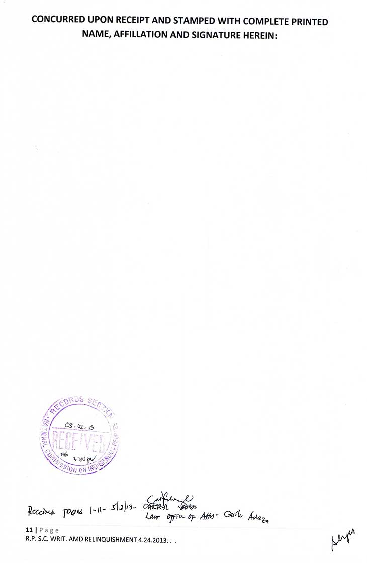 • NCIP Endorsement for the Fulfillment of the Treaty of Paris to National Agencies