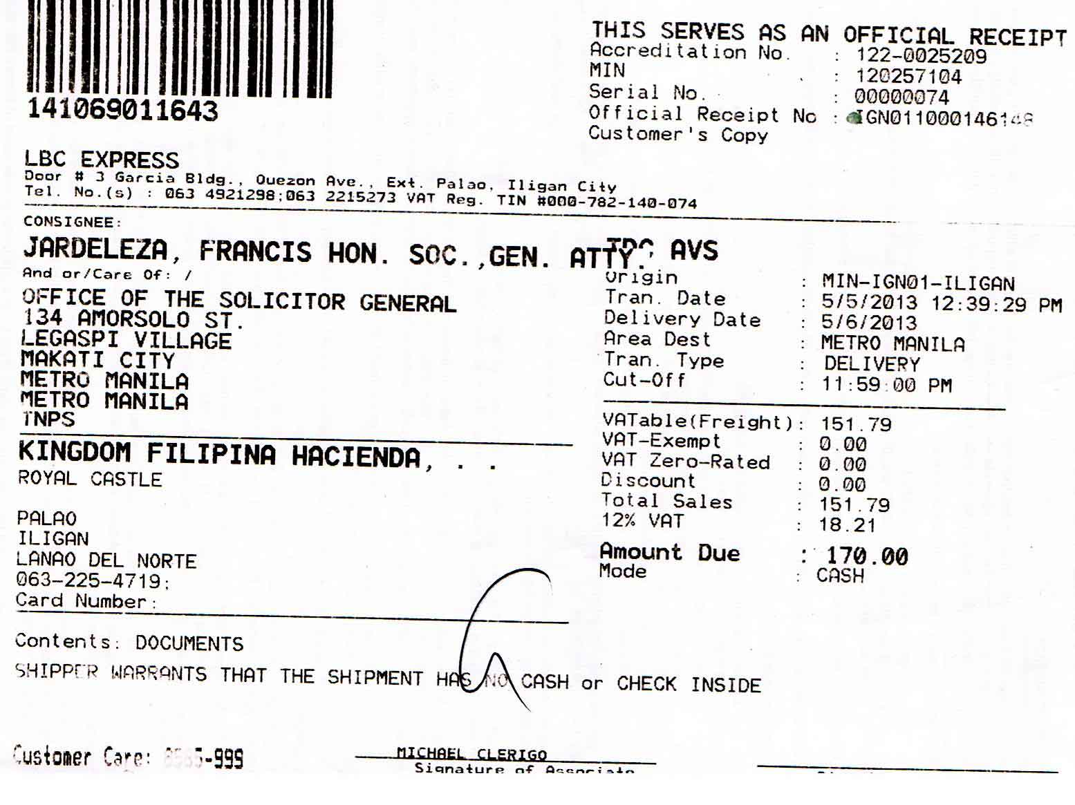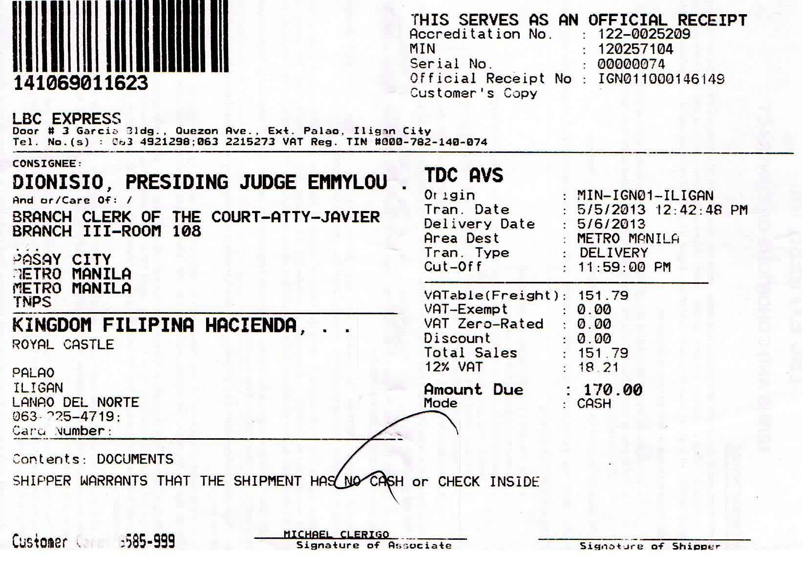 • D.F.A. Letter to Iligan City Justice P-Noy