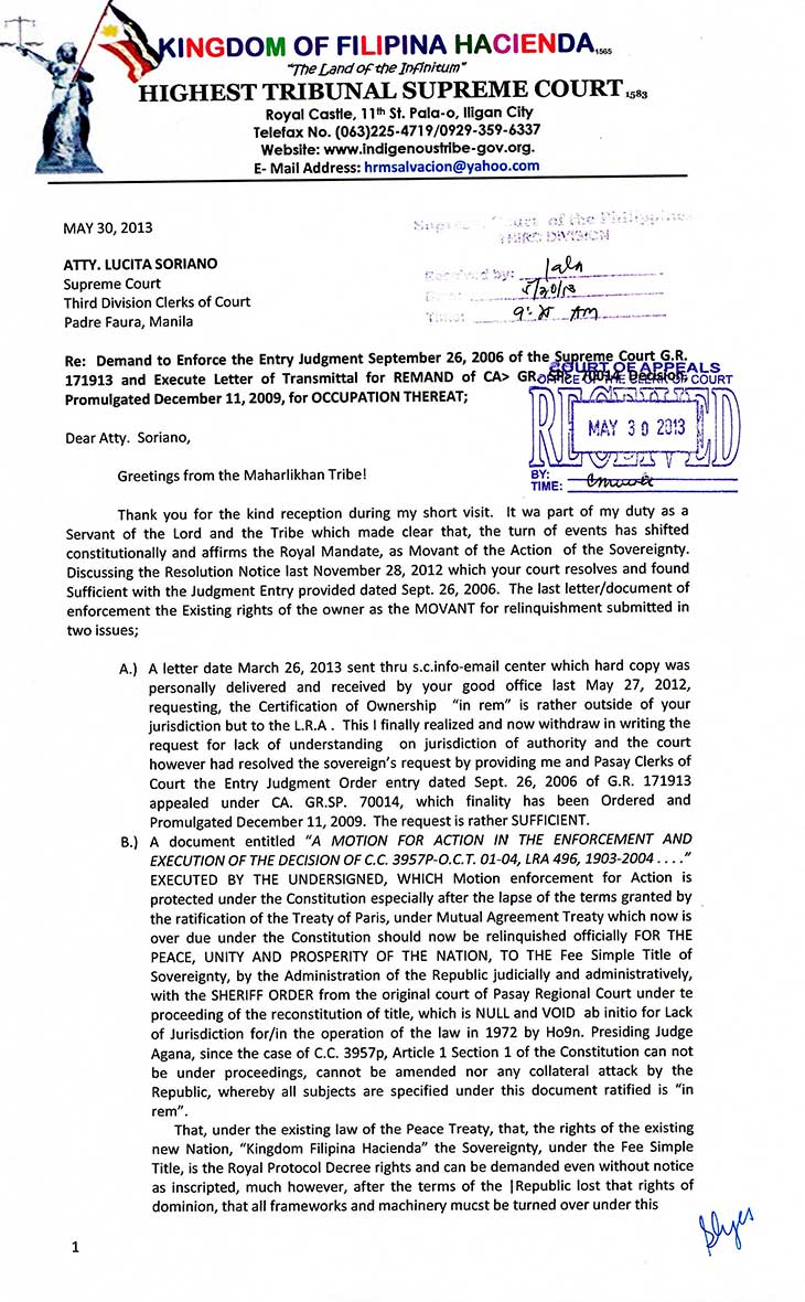 • TREATY OF PARIS BOOK OF REDEEMPTION DEMAND FOR RELINQUISHMENT TO THE SOVEREIGNTY: FOR THE WHOLE FILIPINO PEOPLE AND THE MAHARLIKHAN TRIBE