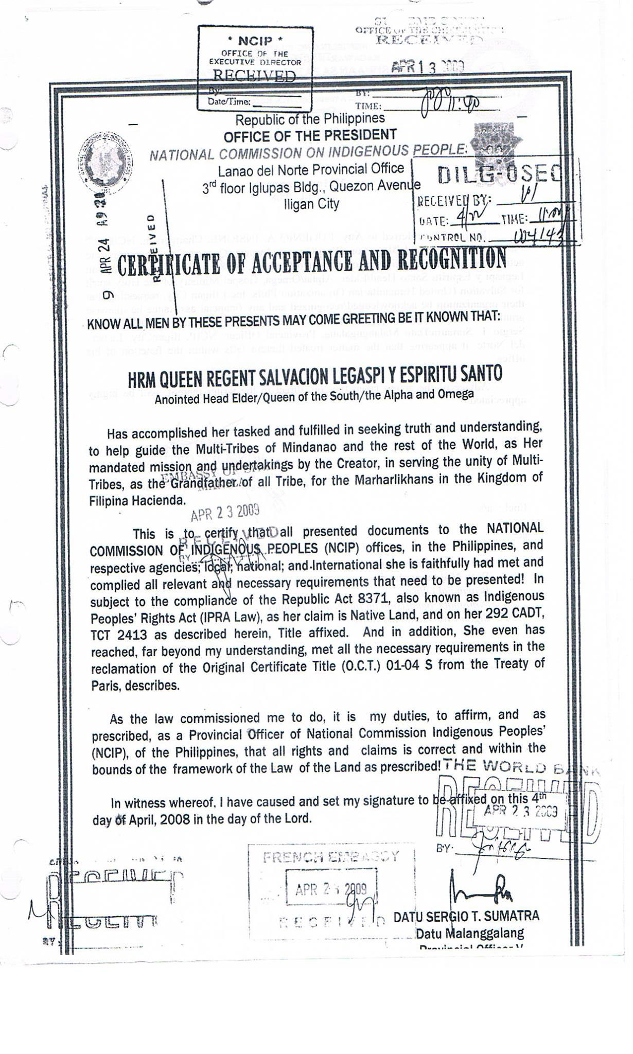 • D.F.A. Letter to Iligan City Justice P-Noy