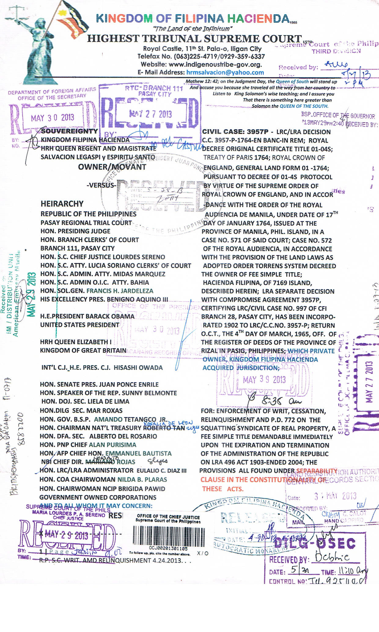(RES JUDICATA "IN REM") DEMAND FOR RELINQUISHMENT OF THE REPUBLIC TO THE SOVEREIGNTY