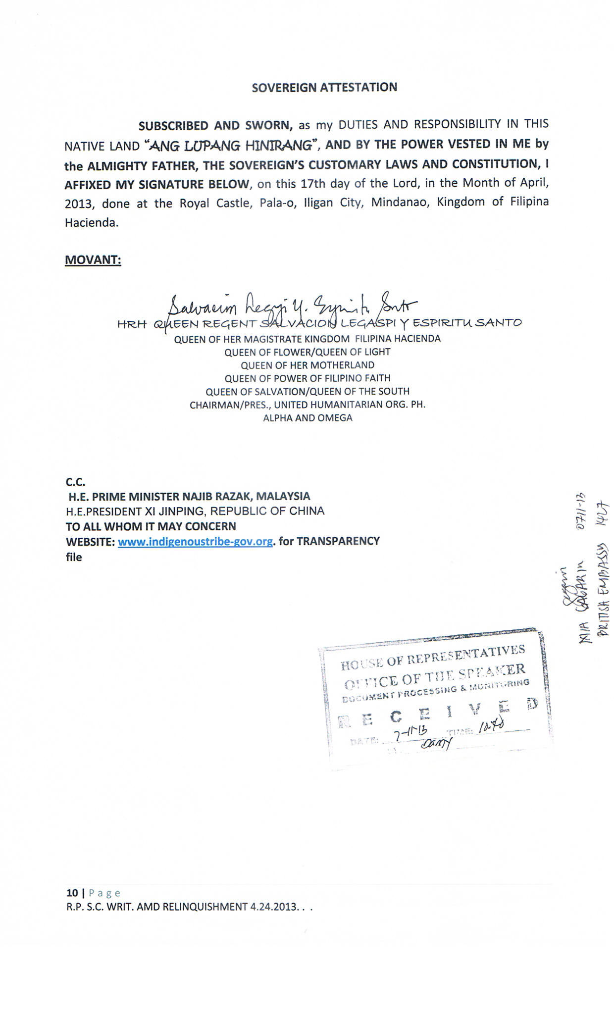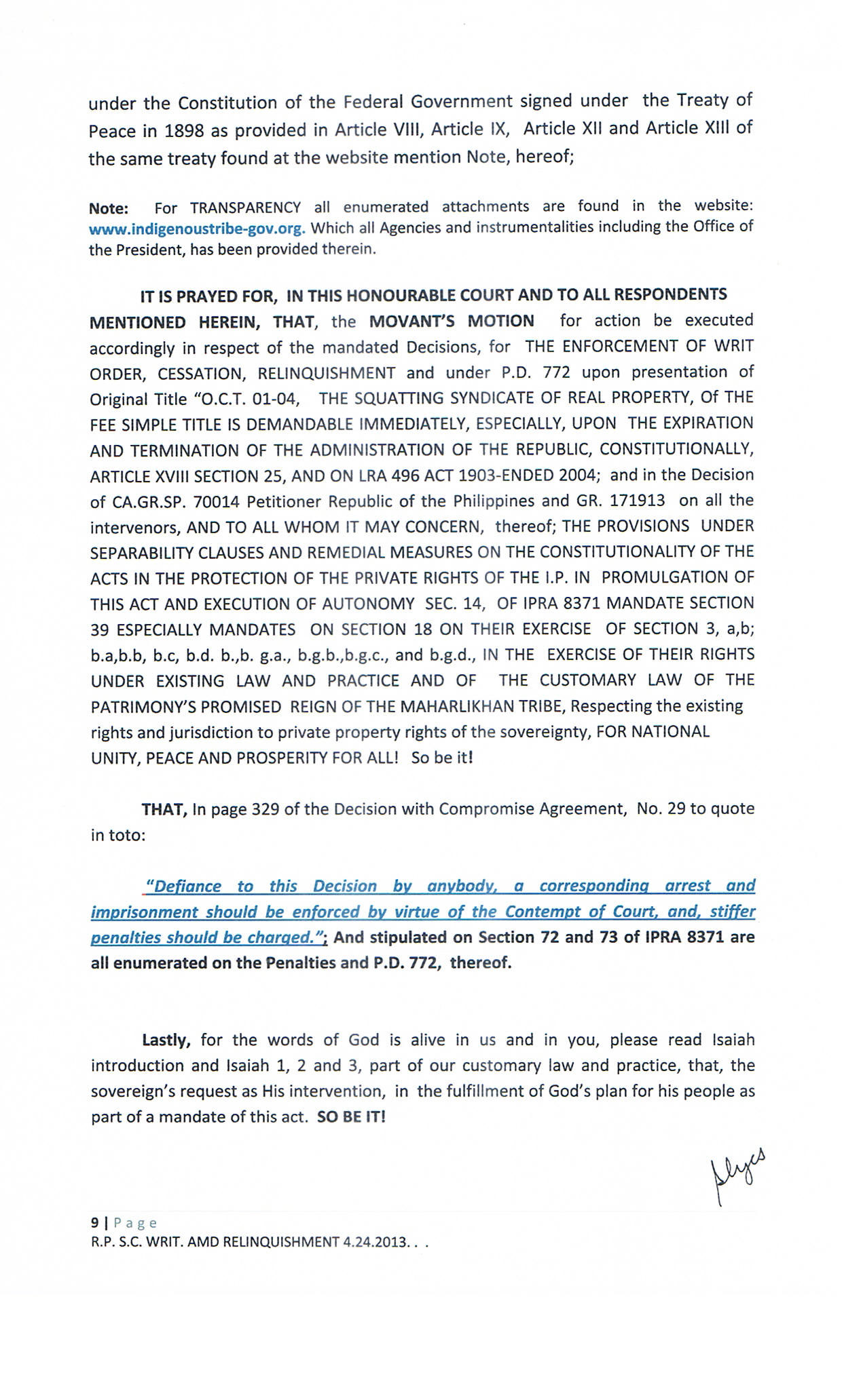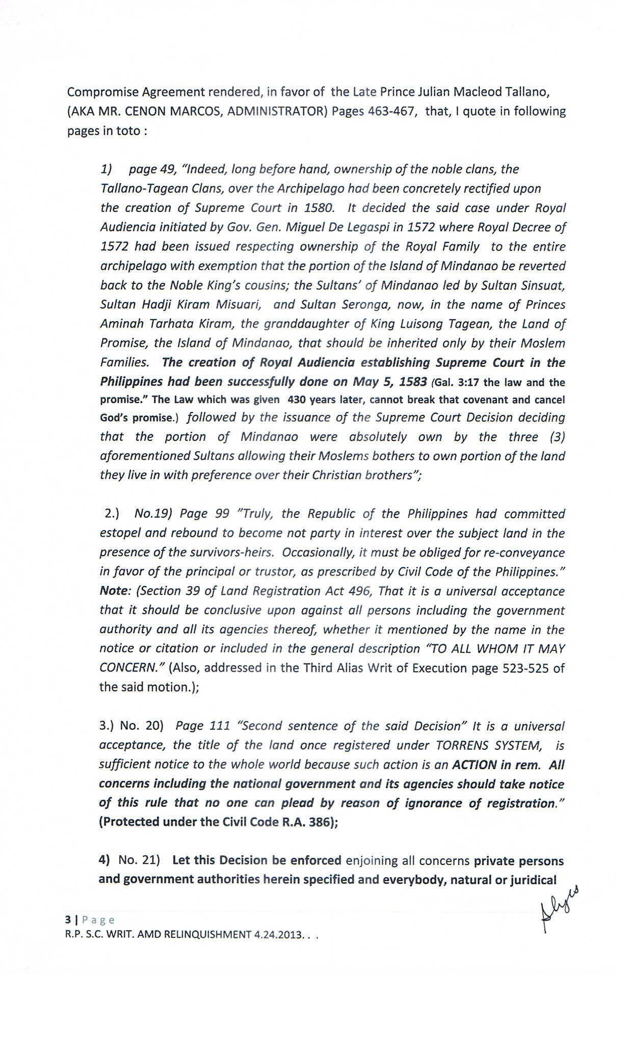 • TREATY OF PARIS BOOK OF REDEEMPTION DEMAND FOR RELINQUISHMENT TO THE SOVEREIGNTY: FOR THE WHOLE FILIPINO PEOPLE AND THE MAHARLIKHAN TRIBE