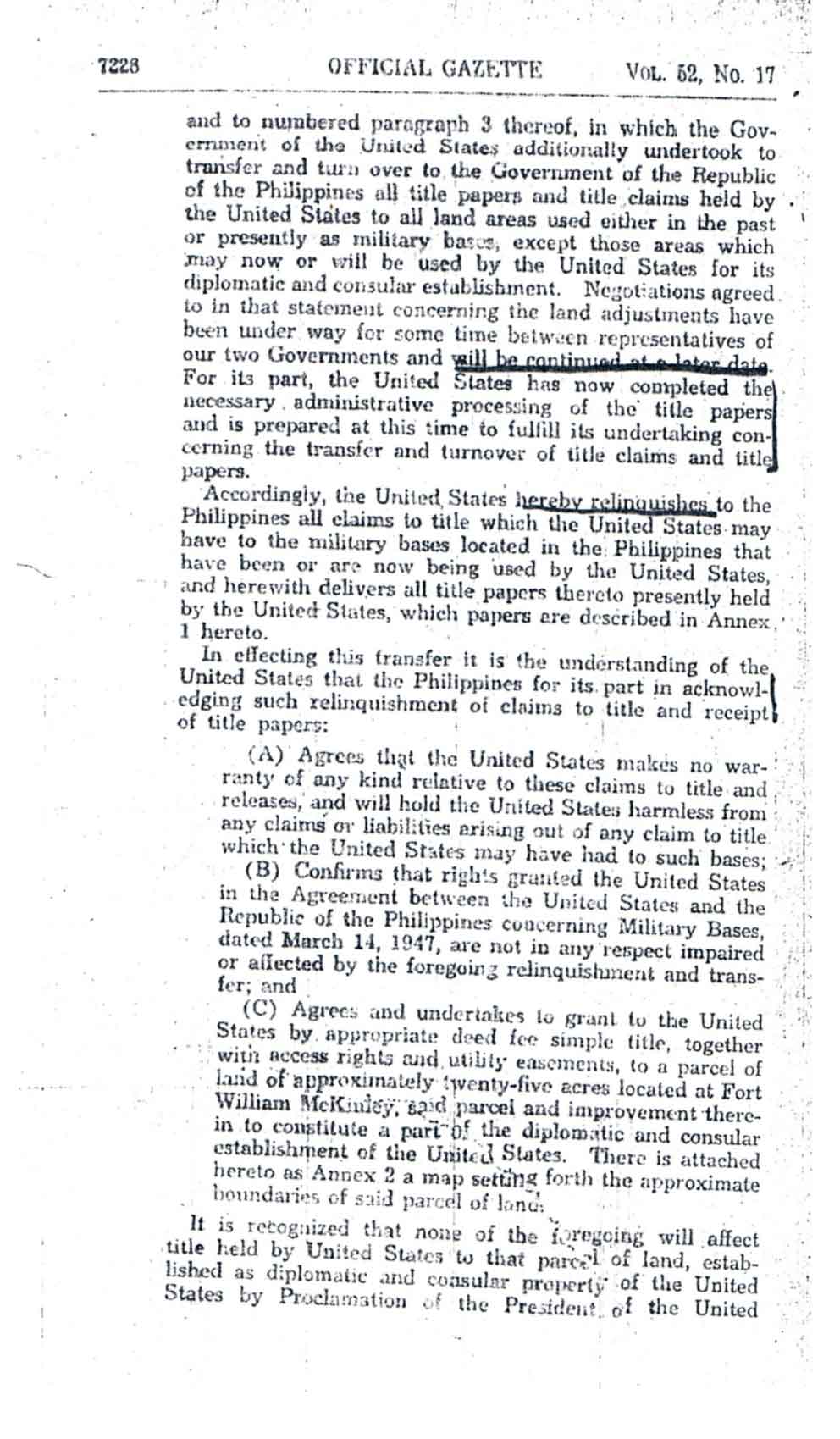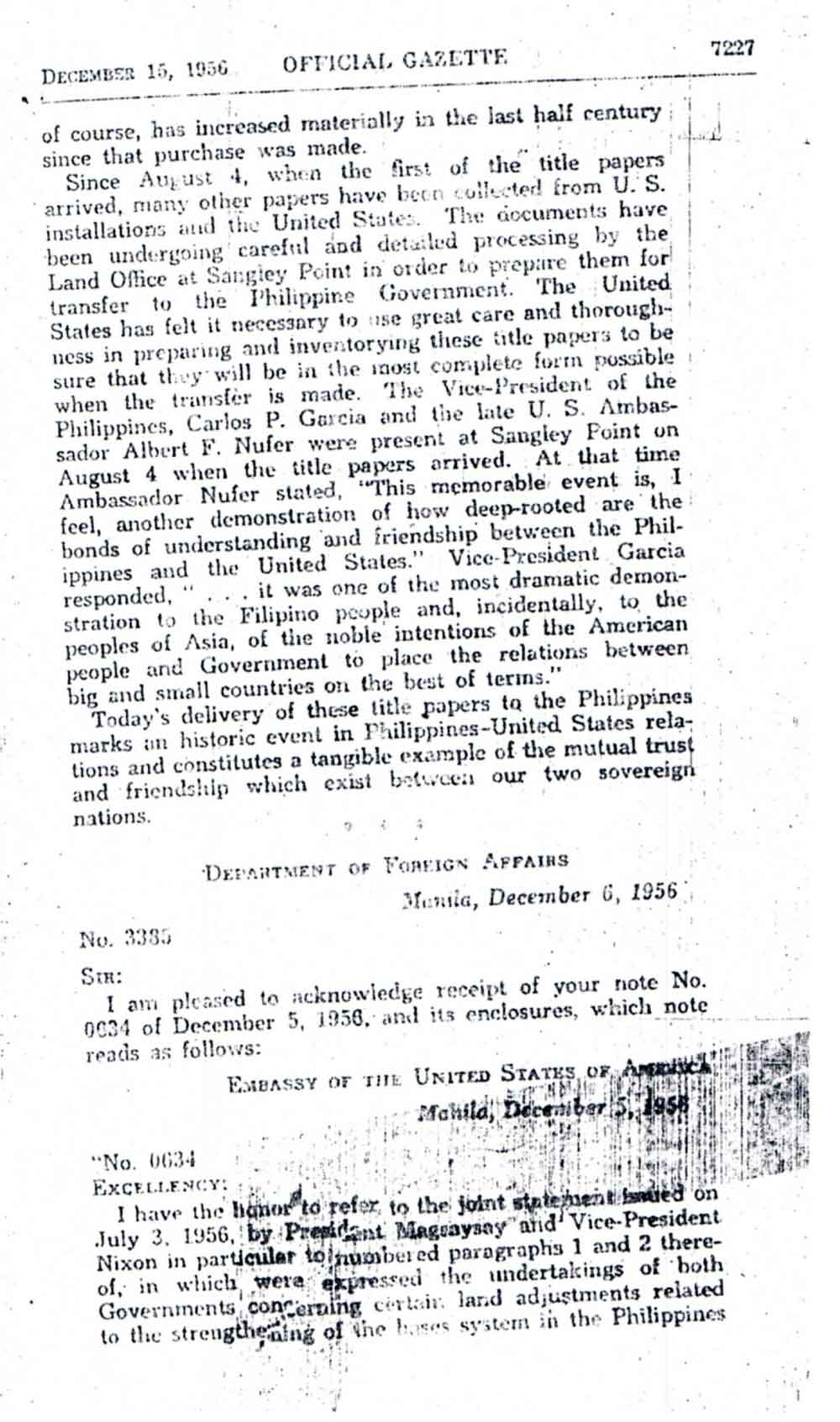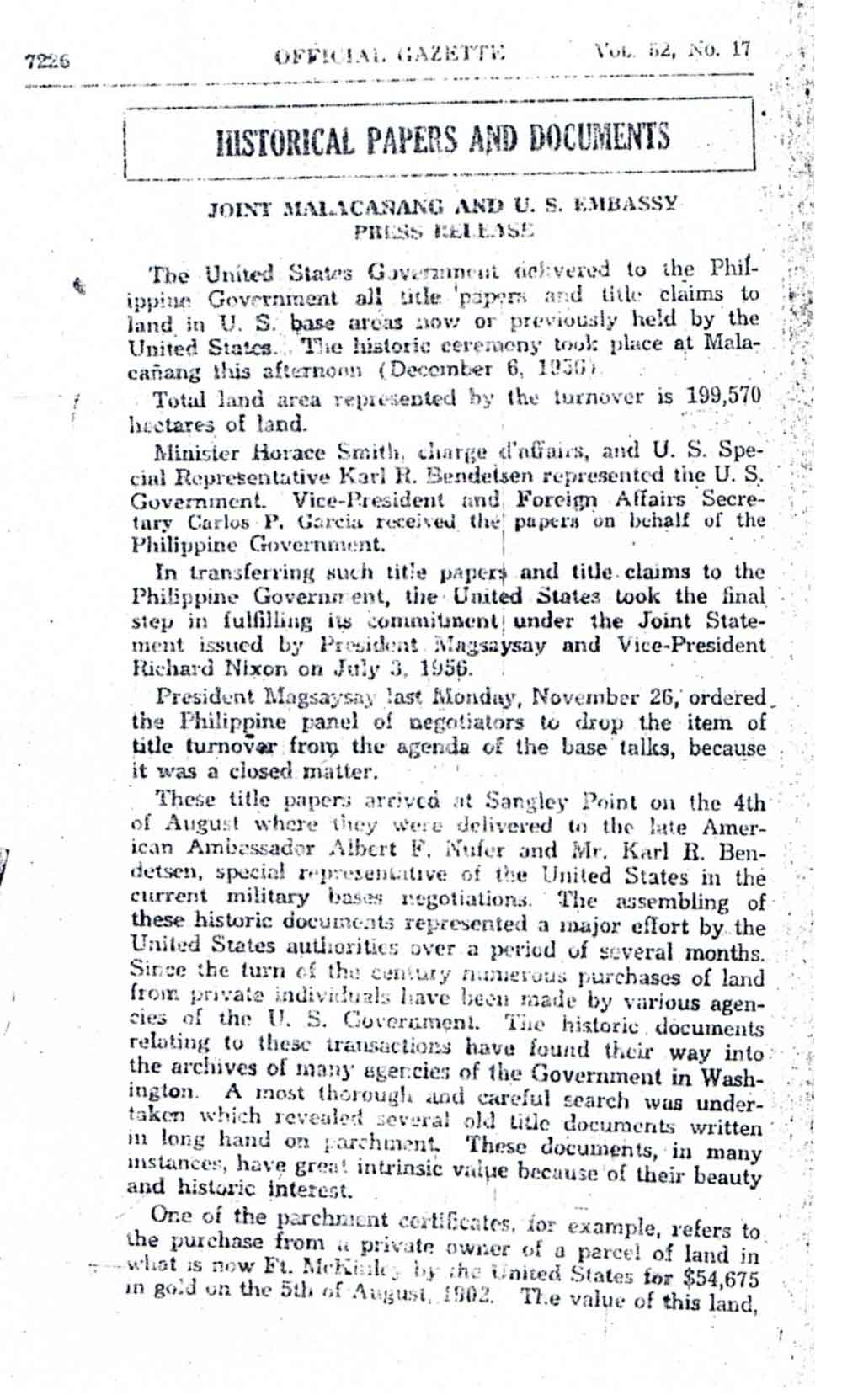 Joint Malacanang And U.S. Embassy Historical Paper For Turn-Over Land Rights
