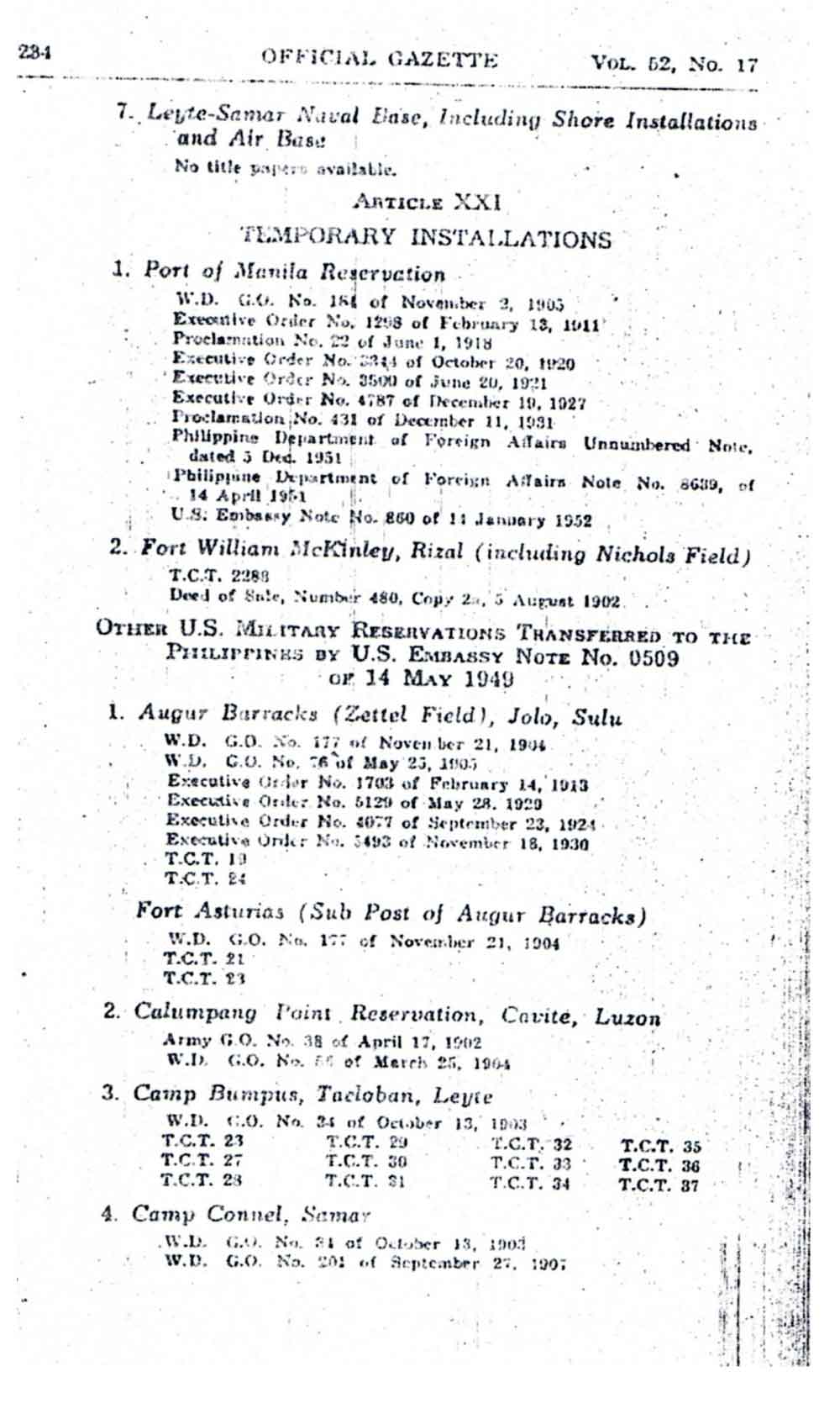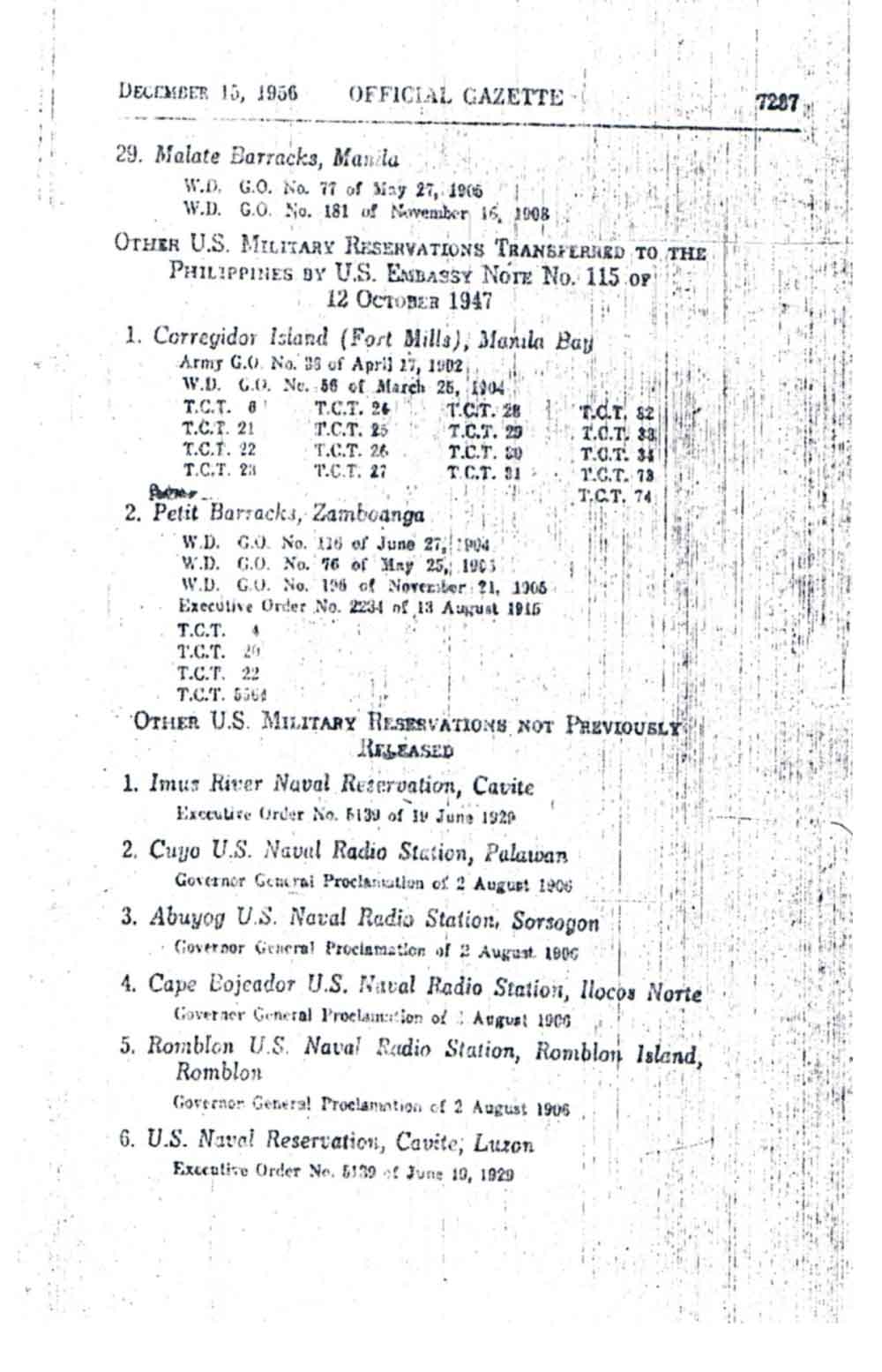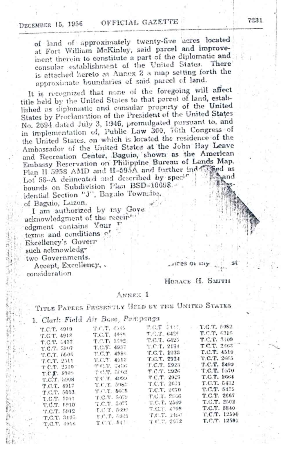 Joint Malacanang And U.S. Embassy Historical Paper For Turn-Over Land Rights